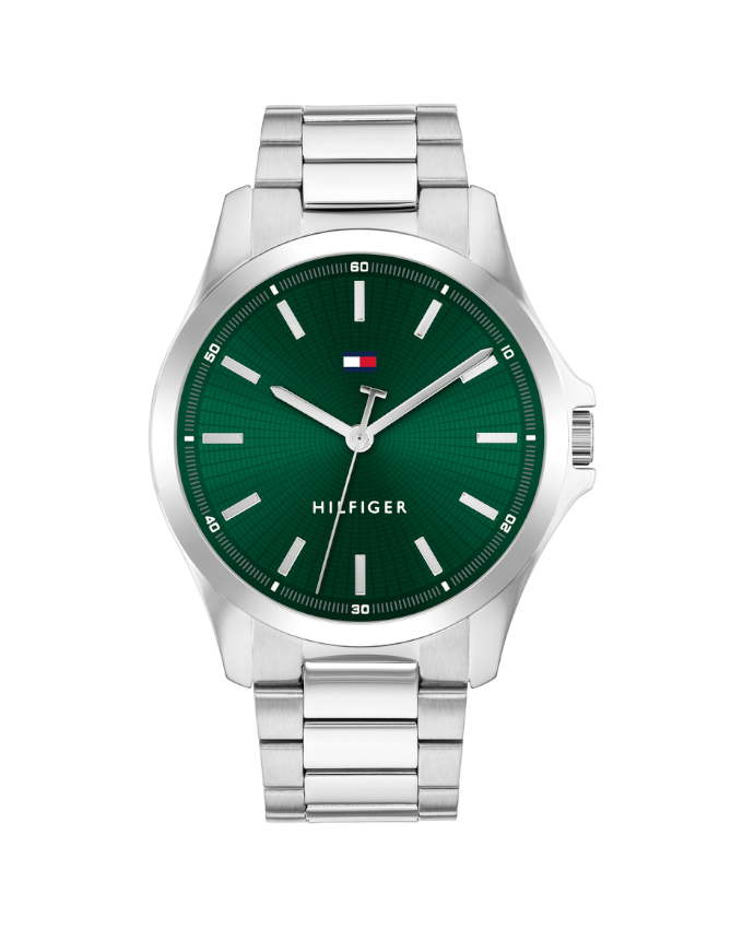 Ανδρικό ρολόι Tommy Hilfiger, με ασημί μπρασελέ και πράσινο καντράν!
